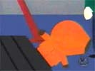 | Kenny gerät unter ein Fliessband und kommt relativ flach auf der anderen Seite wieder raus.